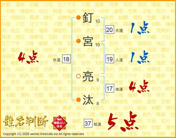 釘宮亮汰さんの総運は37画の5点!