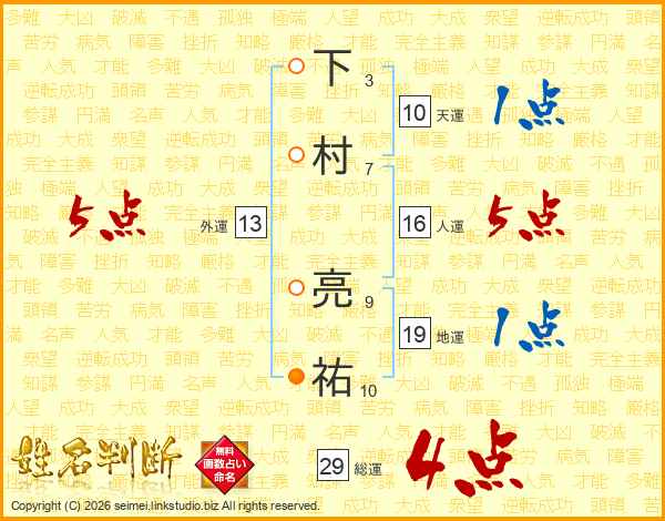 下村亮祐さんの地運は19画の1点!