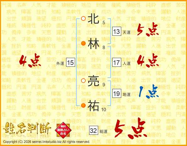 北林亮祐さんの天運は13画の5点!
