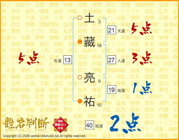 土藏亮祐さんの天運は21画の5点!