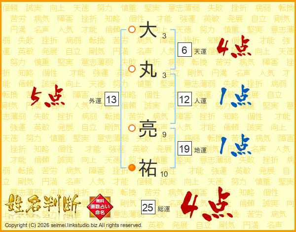 大丸亮祐さんの総運は25画の4点!