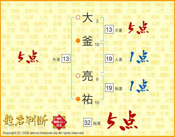 大釜亮祐さんの総運は32画の5点!