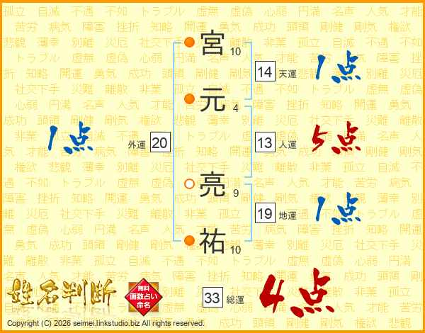 宮元亮祐さんの総運は33画の4点!