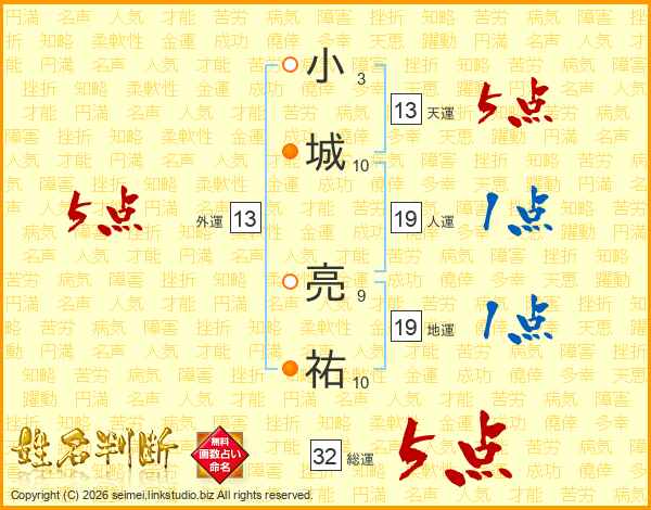 小城亮祐さんの天運は13画の5点!