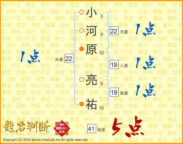 小河原亮祐さんの天運は22画の1点!