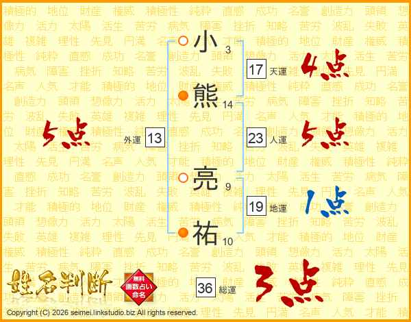 小熊亮祐さんの天運は17画の4点!