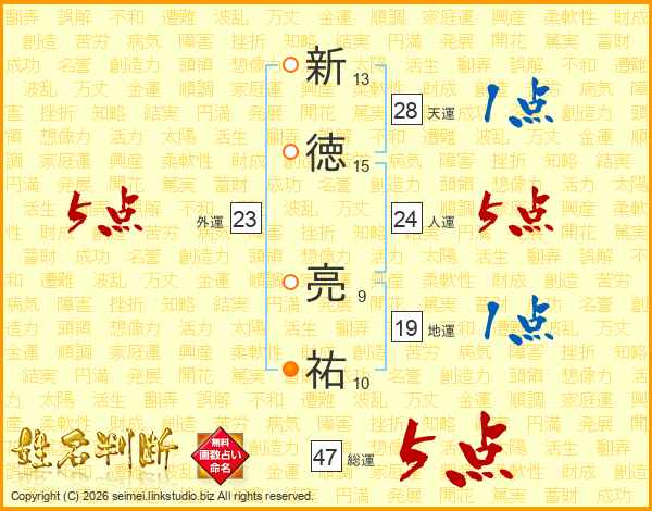 新徳亮祐さんの総運は47画の5点!
