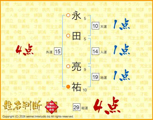 永田亮祐さんの総運は29画の4点!