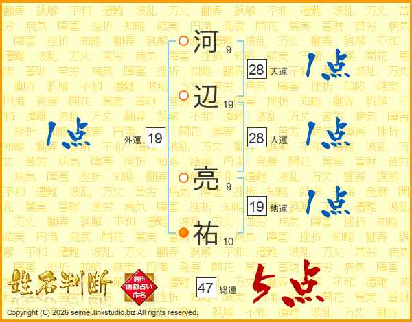 河辺亮祐さんの総運は47画の5点!
