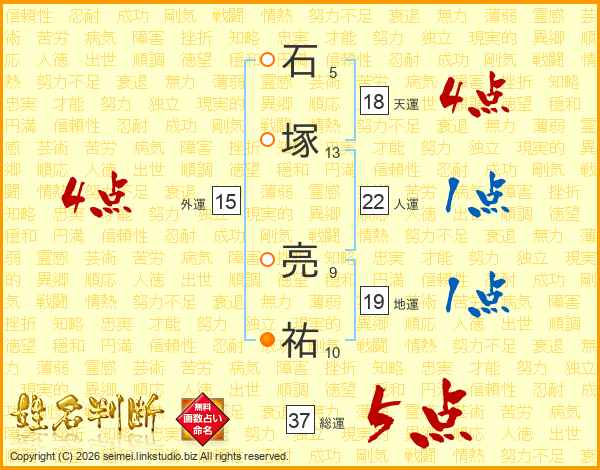 石塚亮祐さんの総運は37画の5点!