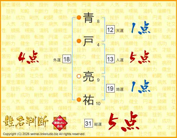 青戸亮祐さんの総運は31画の5点!