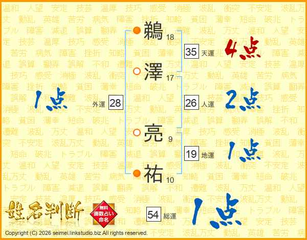 鵜澤亮祐さんの天運は35画の4点!