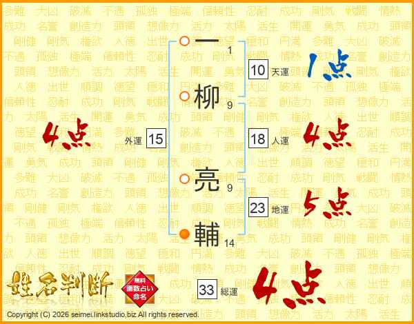 一(1画)柳(9画) 亮(9画)輔(14画)