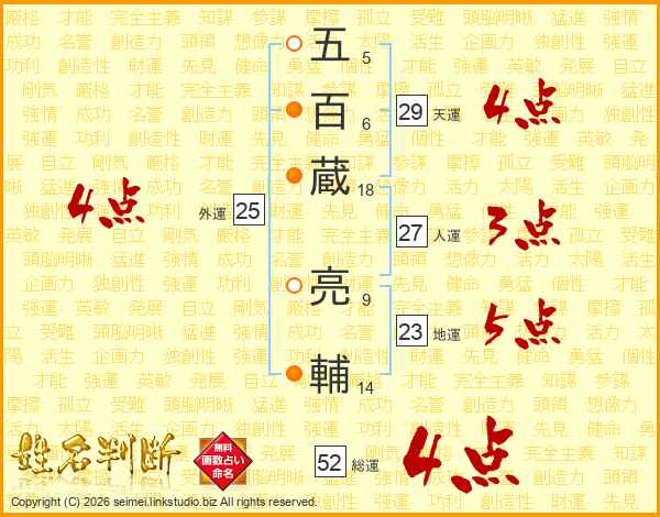 五百蔵亮輔さんの総運は52画の4点!