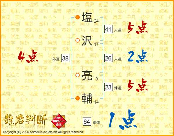 塩(24画)沢(17画) 亮(9画)輔(14画)