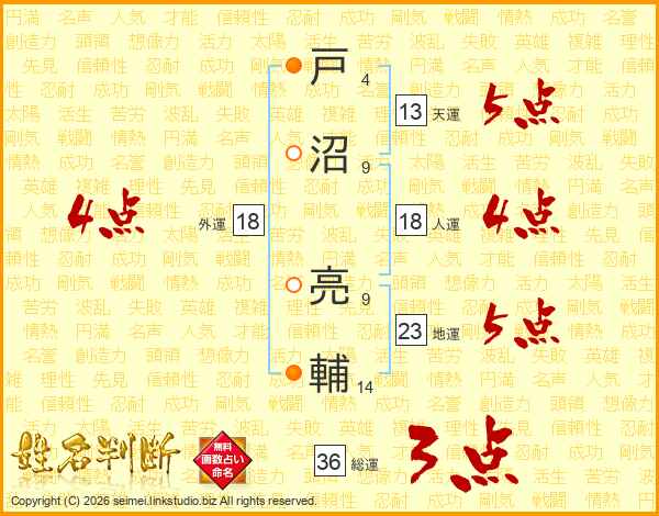 戸沼亮輔さんの天運は13画の5点!