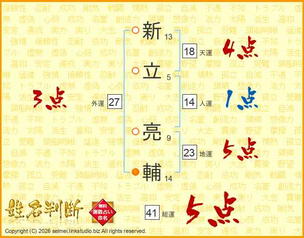 新立亮輔さんの総運は41画の5点!