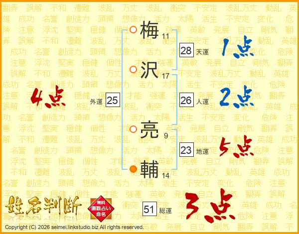 梅沢亮輔さんの地運は23画の5点!
