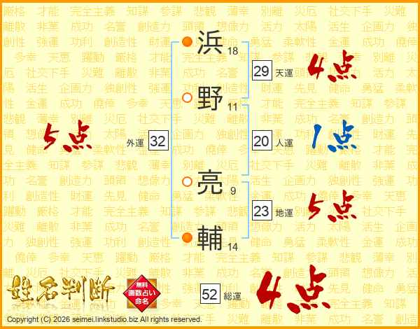 浜野亮輔さんの総運は52画の4点!