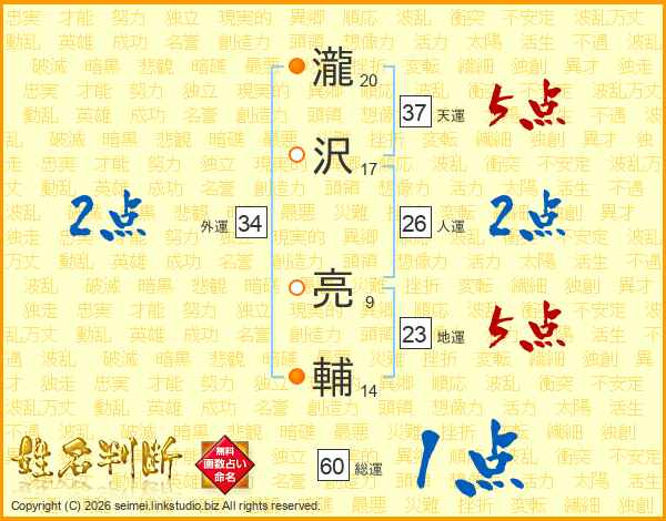 瀧沢亮輔さんの天運は37画の5点!