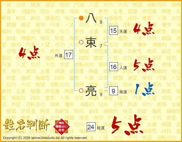 八束亮さんの総運は24画の5点!