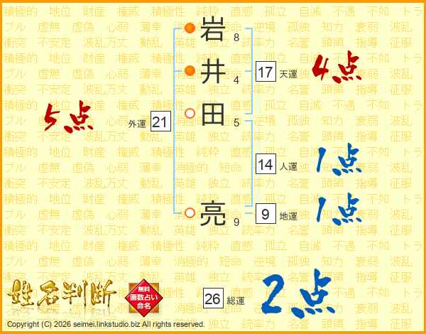 岩井田亮さんの総運は26画の2点!