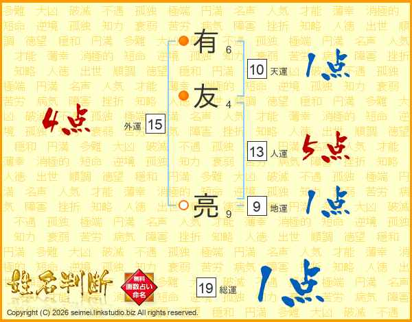 有友亮さんの総運は19画の1点!