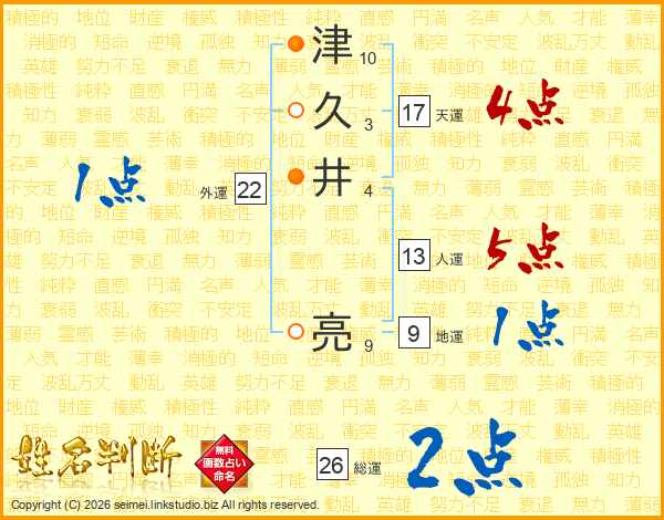 津久井亮さんの天運は17画の4点!