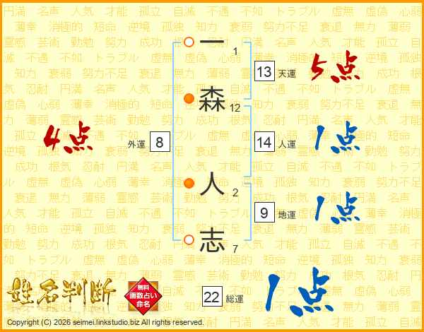 一森人志さんの天運は13画の5点!