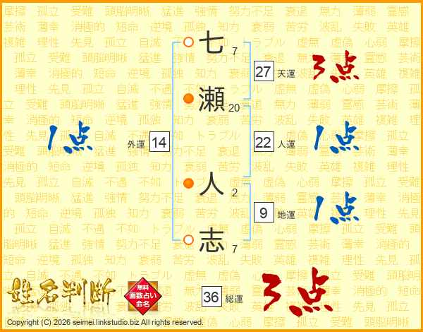 七瀬人志さんの天運は27画の3点!