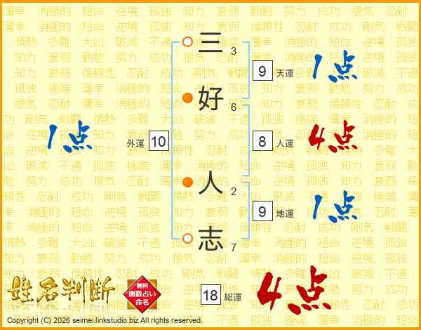 三好人志さんの総運は18画の4点!
