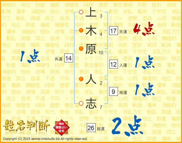 上(3画)木(4画)原(10画) 人(2画)志(7画)