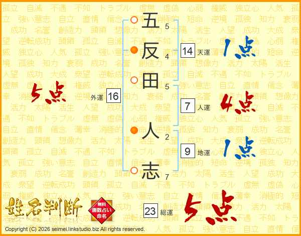 五反田人志さんの総運は23画の5点!