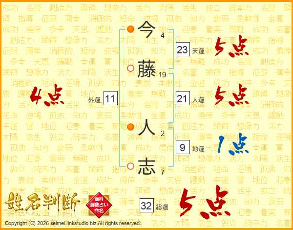 今藤人志さんの総運は32画の5点!