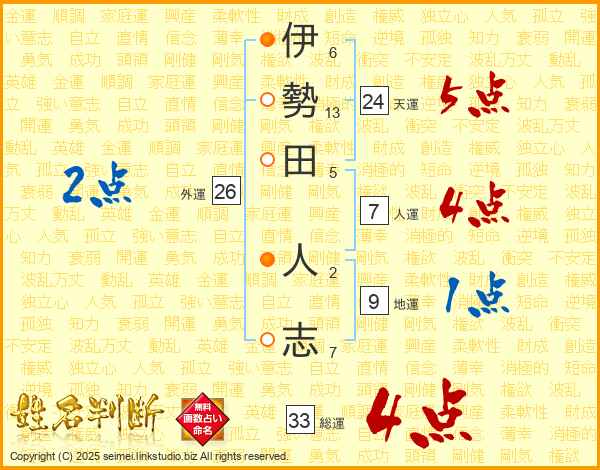 伊勢田人志さんの総運は33画の4点!