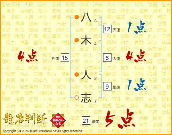 八木人志さんの総運は21画の5点!