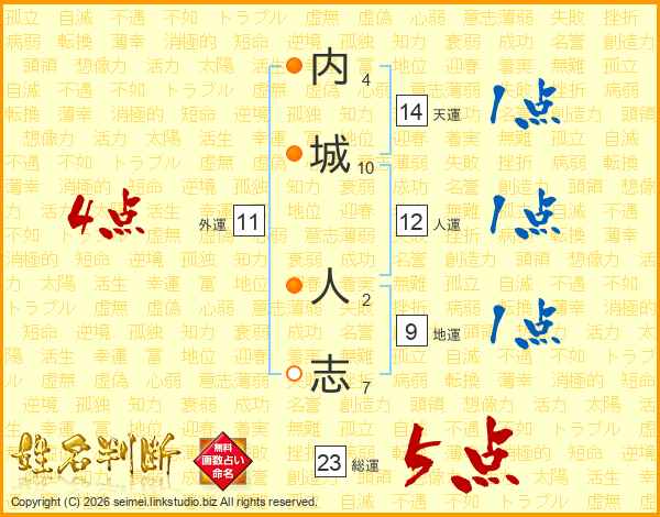 内城人志さんの総運は23画の5点!