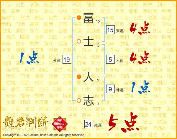 冨士人志さんの天運は15画の4点!