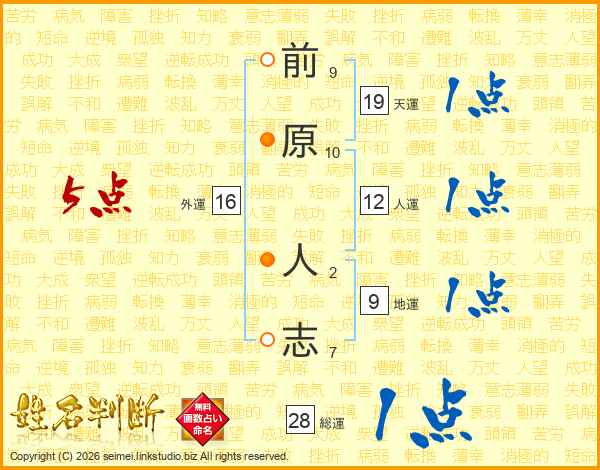 前原人志さんの総運は28画の1点!
