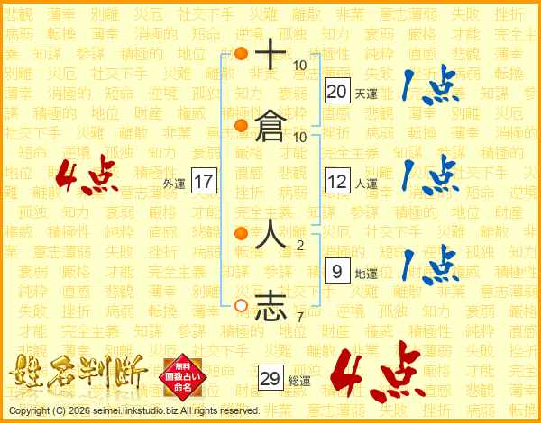 十倉人志さんの総運は29画の4点!