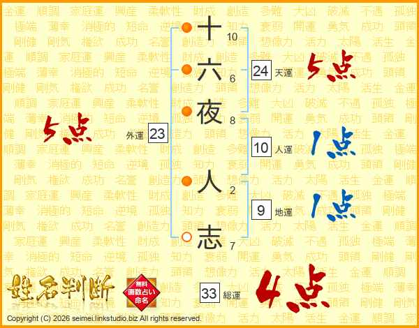 十(10画)六(6画)夜(8画) 人(2画)志(7画)