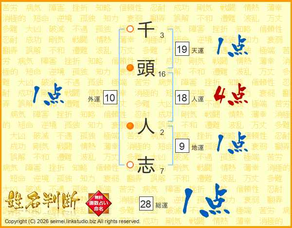 千頭人志さんの総運は28画の1点!