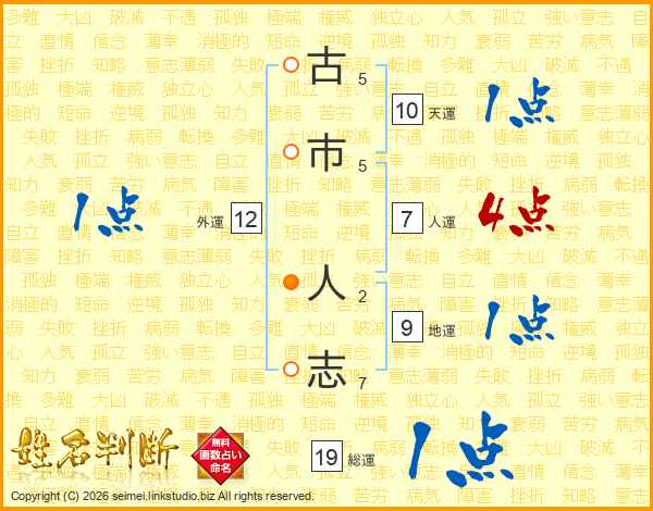 古(5画)市(5画) 人(2画)志(7画)