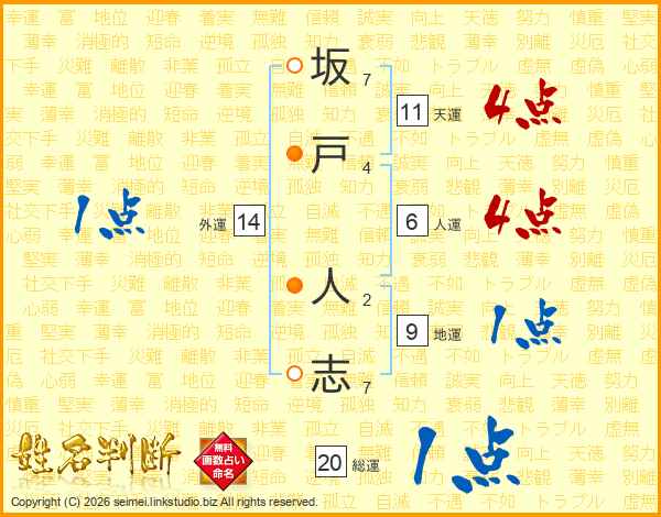 坂戸人志さんの天運は11画の4点!