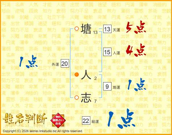 塘人志さんの天運は13画の5点!