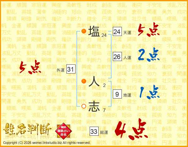 塩人志さんの総運は33画の4点!