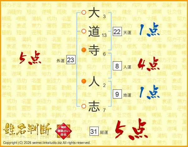 大(3画)道(13画)寺(6画) 人(2画)志(7画)