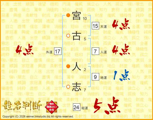 宮古人志さんの天運は15画の4点!