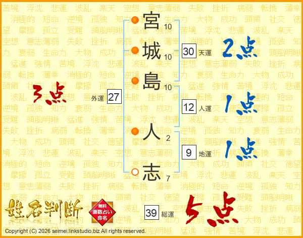 宮城島人志さんの総運は39画の5点!