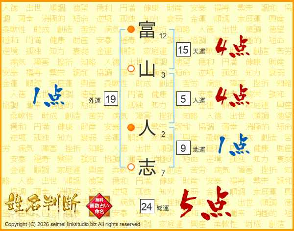 富(12画)山(3画) 人(2画)志(7画)